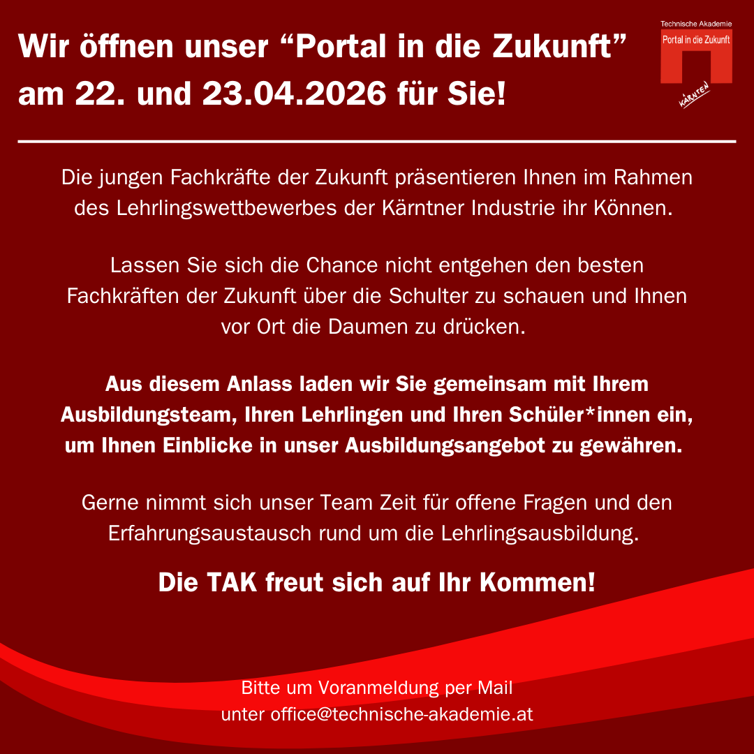 Am 22.04. und 23.04.2026 öffnen wir im Rahmen des Lehrlingswettbewerbs unsere Türen – schauen Sie den Fachkräften von morgen über die Schulter und lernen Sie unser Unternehmen kennen!
